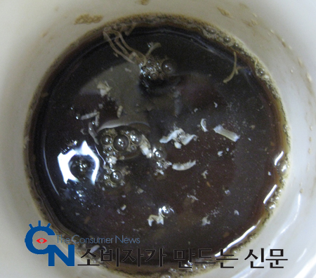 정 씨는 "아이들이 설명하길 콜라를 컵에 따라 마시는데 거품이 사그러들자 두께 2mm 남짓의 실지렁이 같은 가늘고 짤막짤막한 이물질이 콜라 위에 둥둥 떠 있었다고 한다"며 분개했다.