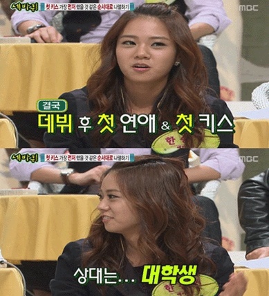 한승연은 “20살 때 첫키스를 했다”며 첫 연애 사실에 대해 밝혔다.