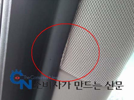 차량 지붕과 차체가 이어지는 이음새 부분의 천 조각이 너무 짧게 처리돼 고무덮개로부터 삐져나와 있었던 것. 차량 도어와 히터 나오는 부위에 시커멓게 때가 타있는 것 또한 뒤늦게 발견됐다.