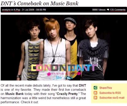 DNT의 소속사 오렌지엔터테인먼트의 한 관계자는 “해외에서의 뜨거운 반응에 놀랐다. 중국인으로 보이는 한 팬이 DNT가 부른 ‘정신없이 예뻐’의 안무를 따라한 영상을 유튜브에 올리기도 했다”고 밝혔다.