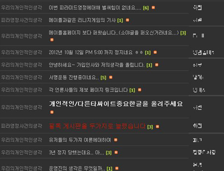 <메이플스토리 관련 커뮤니티의 게시판을 꽉 채운 항의글>