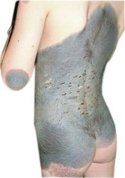 하지만 반점이 넓게 퍼지며 등 전체를 덮었다. 특히 반점에는 은빛 털이 자라기 시작했고 몇 달 만에 등과 팔, 다리까지 털이 번졌다.
