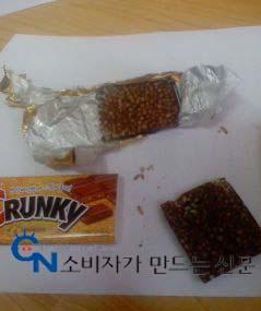 서울 논현동의 박 모(여.29세)씨는 최근 6살 아이가 좋아하는 롯데제과 크런키 초콜릿을 사줬다. 아이가 한입 베어 물자 살아있는 애벌레 대여섯 마리가 꿈틀거리며 떨어졌다.