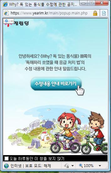 ▲ 수정내용을 안내하는 예림당 홈페이지 팝업창.