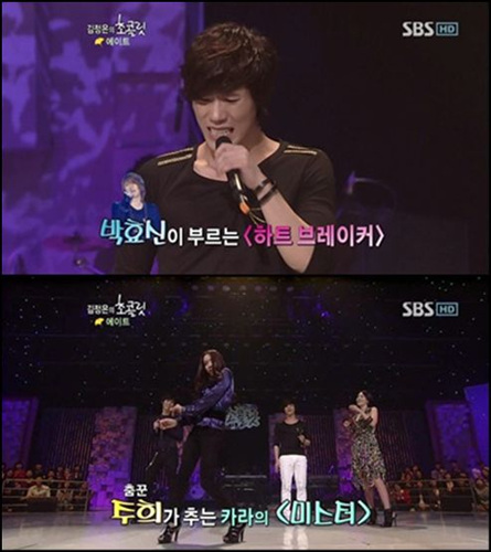 혼성그룹 에이트가 10월 24일 방송된 SBS '김정은의 초콜릿'에 출연, 박효신표 하트브레이크를 열창하는 등 다재다능한 끼를 선보여 주목을 끌었다.