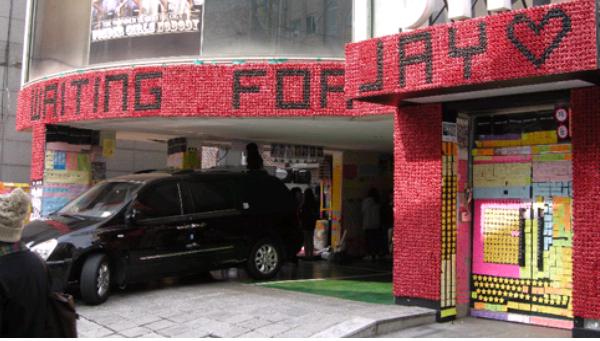 2PM 팬 연합 카페 네오핫티스트는 25일과 26일 서울 청담동에 위치한 2PM 소속사 JYP엔터테인먼트 사옥에 종이 장미 작품을 설치했다.