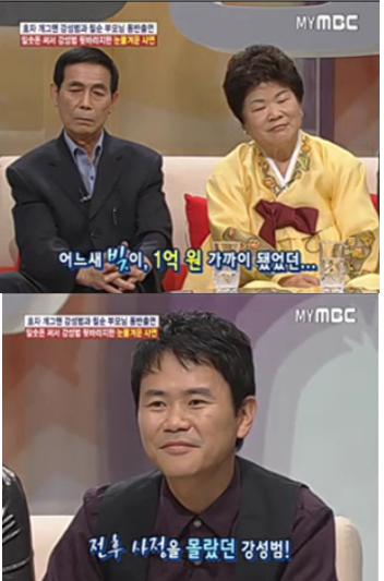 강성범은 “당시 전후사정을 알지 못했다. 자식에게 짐이 되기 싫어 부모님이 숨겨왔다”며 “오랜무명 끝에 활동하던 당시 사람들이 부모님을 협박하는 현장을 목격한 뒤에야 280만원이 1억원까지 불어난 것을 알게 됐다. 모든 빚은 청산했다”고 말했다.