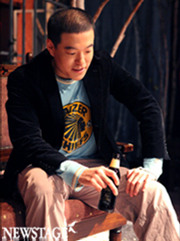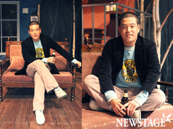 그는 극중에서 맥주를 마신다. 객석에서 탄성이 나올 만큼 한 병을 원 샷으로 들이킨다. 어떤 맥주회사의 광고처럼 관객들은 맥주를 눈으로 마시는 듯 그 양이 줄어드는 것을 침을 삼키며 지켜보게 된다. 그리고는 걱정이 된다. 혹시 사례가 걸리지는 않을까? 더불어 진짜 맥주일까? “첫날은 진짜 맥주를 마셨어요. 어우, 트림이 아주 그냥. 그래서 콜라로 바꿨어요. 그러나 콜라도 역시 트림이 만만치 않더라고요. 지금 마시는 건 커피에요. 커피가 흔들면 거품도 나고 색도 비슷하고. 하지만 2회 공연이 있는 날은 그것도 위험해요. 일요일 2회 공연을 했는데 커피만 거의 2000cc를 마신 거예요. 카페인이 심장을 정말로 벌렁거리게 만들고 정신이 없더라고요.” 안 그래도 공연에 취해있는 그가 커피에도 취했다. “베이스, 기타, 드럼, 키보드 등의 악기소리가 각자 다른 곳에서 들리고 관객들이 하품하는 소리까지 다 들렸어요. 거의 환각상태지요.” 마지막 공연 때는 다시 한 번 진짜 맥주를 마시며 공연을 하고 싶다고 한다. “즐겁게, 그 순간에 취해서 해보고 싶어요.”