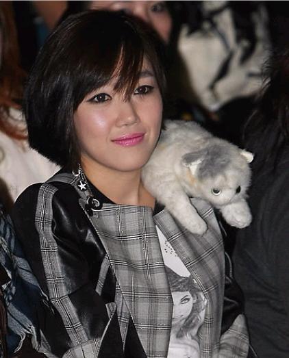 호피 무늬 패션과 고양이 인형으로 연출한 낸시랭은 10월 31일 오전 11시 서울 성북구 안암동 고려대학교 화정체육관에서 열린 '무한청춘엔진' 무대에 섰다.