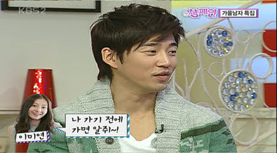 31일 KBS 2TV ‘신동엽 신봉선의 샴페인’에 출연한 윤계상은 “이미연은 술을 정말 좋아한다. 본인이 집에 가기 전까지 어느 누구도 가면 안 되는 주사를 갖고 있다”고 폭로했다.