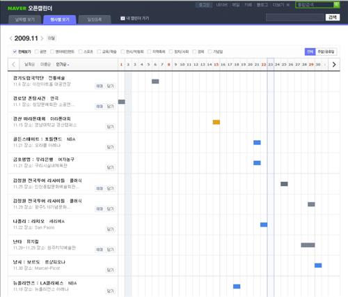 또 날짜별 보기, 행 사별 보기가 가능하며 내 캘린더, 블로그, 카페 등에 담기 기능을 지원해 관심 있는 정보를 편리하게 관리할 수 있도록 했다. 특히 이용자가 제안한 일정을 서비스에 노출할 수 있도록 '일정등록' 기능을 제공해 유용한 일정을 공유할 수 있도록 했다.