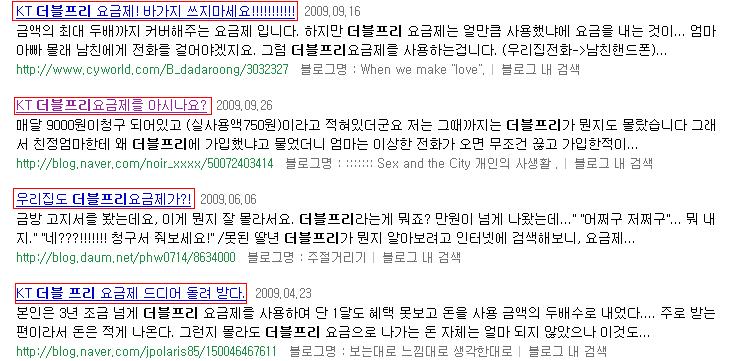 '더블프리'요금제 피해는 <소비자가 만드는 신문>은 물론 포털사이트, 인터넷카페, 블로그 등에 끊임없이 제기되고 있다. 그러나 정작 KT는 손을 놓고 있는 실정이라 소비자들의 화를 돋우고 있다.
