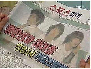 이 때 찬성의 옆에서 동작을 취하는 멤버들이 바로 현재 2PM의 택연과 닉쿤.