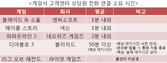◆ 국내 게임사 고객센터 연결 '쾌속'