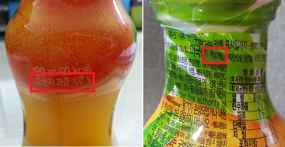 과즙 100%로 유명한 한국코카콜라음료의 미닛메이드 오렌지100 플러스는 '오렌지과즙 100%'로 표기해 별도의 첨가물이 전혀 없는 것처럼 착각을 불러일으키지만 원재료를 살펴보면 액상과당을 비롯해 말토덱스트린, 천연착향료 등 첨가물이 함유되어 있다.