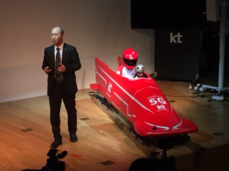 KT는 2018년 평창에서 5G 네트워크가 구축됐을 때 선보일 수 있는 ‘실감형 미디어 서비스’를 제시했다. 지난 2월, 1차 테스트 이벤트에서 선보였던 서비스보다 보다 구체화한 게 특징이다. 특히 봅슬레이 관련 실감형 미디어 서비스는 이번에 처음으로 선보였다.