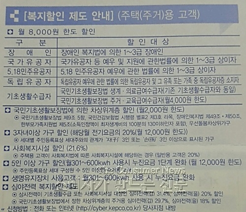 이에 대해 한국전력공사 영업운영부 관계자는 “고지서 뒷면에 할인 내용이 상세하게 안내돼 있다. 또한 고객센터로 전화할 경우 안내멘트를 들을 수 있으며 아파트 게시판 및 언론 등을 통해 다방면으로 홍보하고 있다”고 말했다.