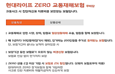 그 외에도 동일 계약자로 현대라이프 ZERO상품에 2건 이상 가입하면 각 보험료가 2%씩 할인되는 ‘ZERO 브랜드할인’이란 특징도 있다.
