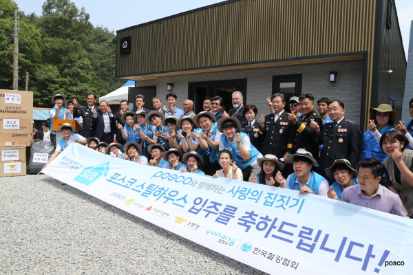 실제 지난 7월 포스코가 전기누전으로 집이 전소된 포항시의 한 노부부에게 스틸하우스를 건립해 기부하면서 화재피해·저소득층 가정 스틸하우스 건축 기부활동은 50번째를 맞았다.