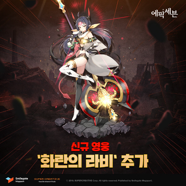 스마일게이트 메가포트는 모바일 턴제 RPG ‘에픽세븐'의 소환 시스템을 개편하고, 신규 영웅 '화란의 라비'를 추가했다고 8일 밝혔다.