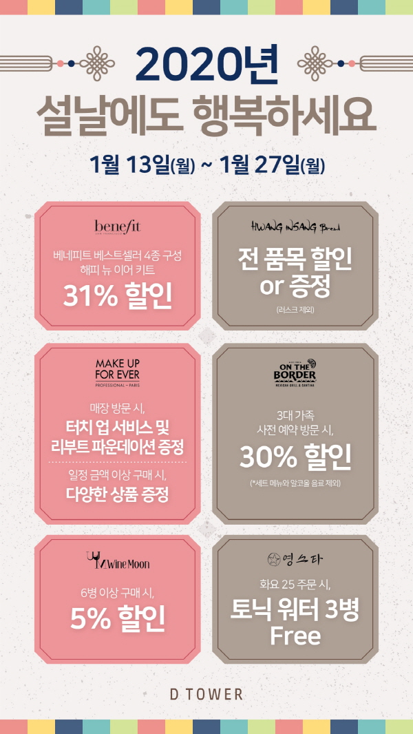 대림산업은 광화문 디타워가 설날을 맞아 선물세트 판매 및 가족 단위 고객을 위한 할인행사 등 프로모션을 진행한다고 13일 밝혔다.
