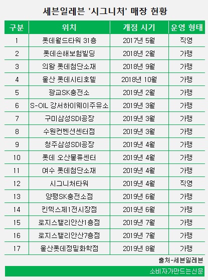현재 시그니처 매장은 17개점에 불과하다. 특히 지난해 8월에 마지막으로 점포를 연 뒤로는 개점 소식이 전혀 들리지 않고 있어 '시그니처' 매장 전략에 브레이크가 걸린 상태다.