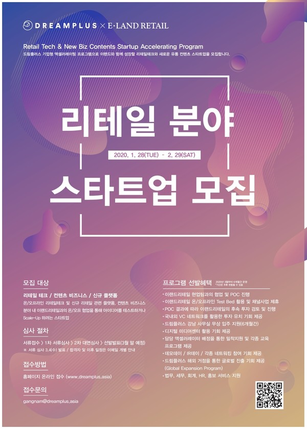 이랜드리테일은 28일부터 리테일테크 스타트업 육성 공모전 2기 지원 접수를 시작한다고 밝혔다.