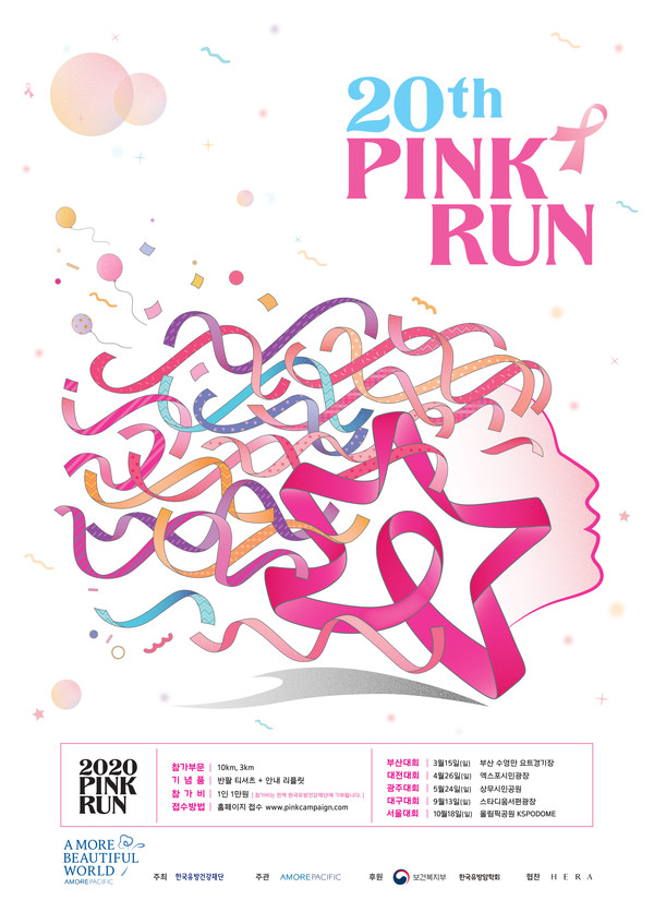 아모레퍼시픽이 주관하고 한국유방건강재단이 주최하는 핑크런은 유방 건강 관리에 대한 정보를 제공하고 유방암 조기 검진의 중요성을 알리기 위해 매년 개최되는 러닝 축제다. 2001년을 시작으로 2019년 작년까지 약 37만 명이 참여했고 약 40억 원의 참가 기부금이 산정됐다.