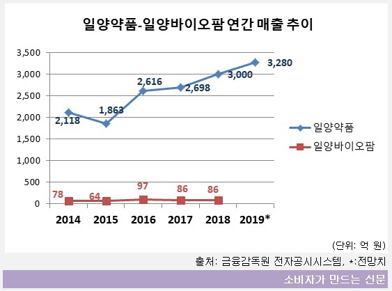 일양약품은 2018년 기준으로 매출 3000억 원을 기록하며 업계 17위를 차지했다.