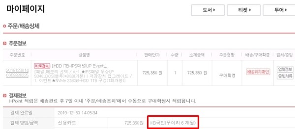 최 씨에 따르면 구매를 하는 시점, 무이자 6개월이라는 표시가 혜택란에 기재돼 있었으며 현재 마이페이지의 결제정보에도 무이자 6개월이 표시되어 있다. 최 씨는 “구매 당시 분명히 무이자 6개월이 표시돼 있었는데 본인들은 아니라고만 우기고 있다”며 “고액의 상품을 구매할 때 무이자 유무는 무엇보다 중요한 정보인데 무조건 소비자가 잘못 봤다는 식이라 기분이 매우 상했다”고 토로했다.