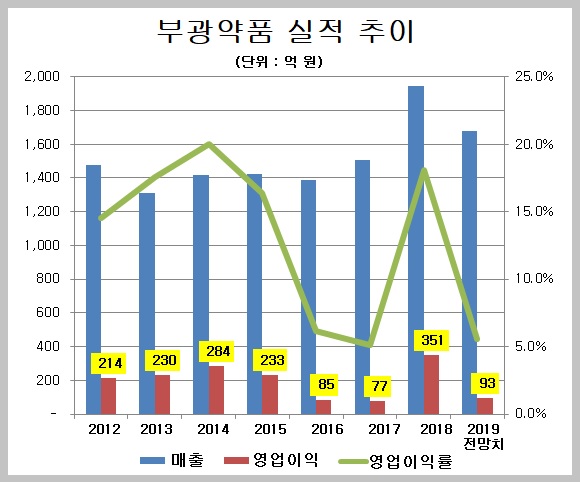김상훈 사장을 중심으로 승계작업이 착착 진행되는 것과 달리, 경영성과는 신통치 않았다. 2013년 김상훈 사장이 대표를 맡은 첫해 부광약품은 매출이 1301억 원으로 전년 대비 11.3% 감소했다. 김 사장이 대표에서 물러나기 전인 2017년 부광약품 매출은 1507억 원에 그치며 완만한 상승세를 그렸다.