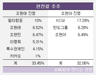반도그룹은 지분율에서 오너 일가인 조원태 회장(6.52%), 조현민 전무(5.31%), 조현아 전 부사장(6.49%)을 앞선다.