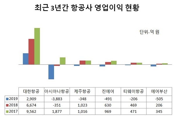 대한항공을 제외한 모든 항공사가 영업적자를 냈다.