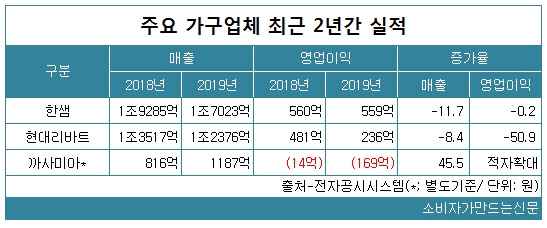 한편, 2018년 3월 신세계그룹에 인수된 까사미아(대표 임병선)는 인수 첫해 816억 원이던 매출이 지난해 1187억 원으로 45.5%나 증가하는 호조를 보였다.
