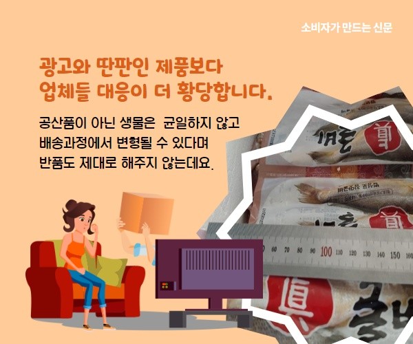 #5. 광고와 딴판인 제품보다 업체들 대응이 더 황당합니다. 공산품이 아닌 생물은 균일하지 않고 배송과정에서 변형될 수 있다며 반품도 제대로 해주지 않는데요.