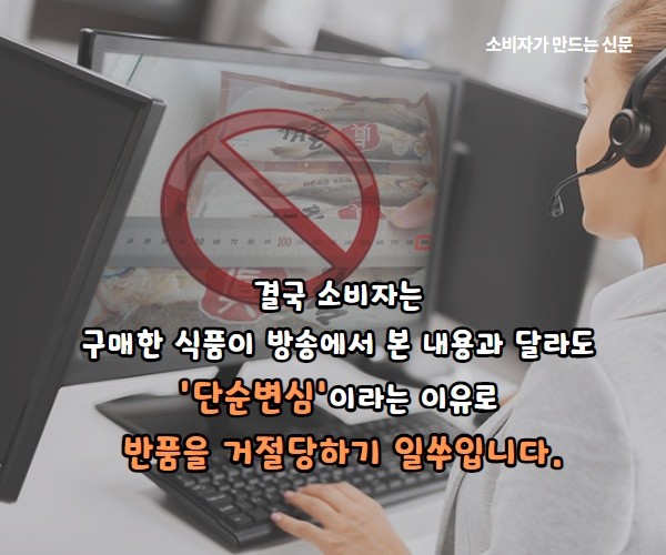 #6. 결국 소비자는 구매한 식품이 방송에서 본 내용과 달라도 ‘단순변심’이라는 이유로 반품을 거절당하기 일쑤입니다.