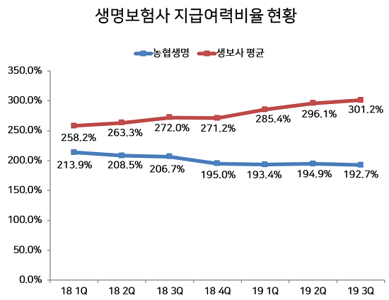 특히 수익성 대비 농지비 부담액이 많은 농협생명의 경우 지난해 3분기 말 기준 지급여력비율이 전년 대비 14% 포인트 하락한 192.7%에 그치고 있다. 금융당국 권고치인 150% 이상을 유지하고 있지만 같은 기간 생보업계 평균 지급여력비율은 꾸준히 상승하고 있는 점에서 건전성 강화가 시급한 상황이다.