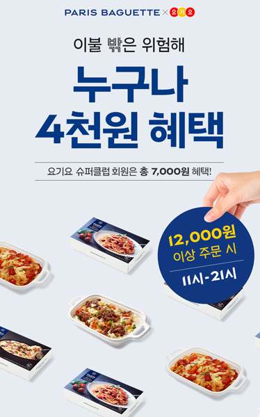 요기요 앱에서 ‘파리바게뜨 전용 쿠폰(4000원 할인)’을 다운로드 받아 오전 11시부터 오후 21시까지 제품을 주문할 수 있다. 요기요 슈퍼클럽 회원의 경우 자동으로 3000원 중복 할인이 적용된다.