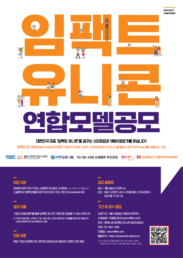 공모 신청방법 및 제출서류 등 세부사항은 카이스트 SK사회적기업가센터 홈페이지에서 확인할 수 있다. 3월 4일에는 서울 성수동 헤이그라운드에서 설명회가 열린다.