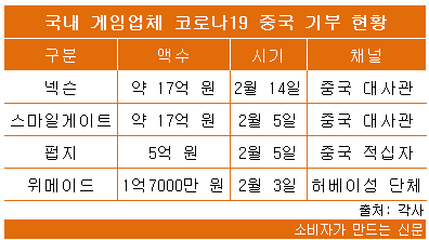 스마일게이트도 지난 5일 넥슨과 동일한 1000만 위안을 중국 대사관을 통해 기부했다. 특히 스마일게이트는 국내 지원에도 적극 나선바 있다.