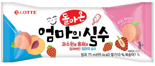 롯데제과 관계자는 "과거 제품의 콘셉트와 포장 디자인, 로고 등의 느낌을 최대한 살렸다"며 "‘돌아온 엄마의 실수’는 딸기, 복숭아 등 과육이 덩어리째 들어있어 달콤하고 상큼한 맛과 함께 씹히는 식감도 좋다"라고 말했다.