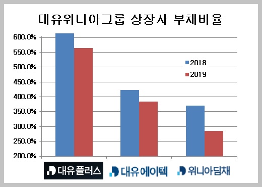 다만 대유위니아그룹 상장사들의 부채비율은 여전히 284%~565%로 높다.