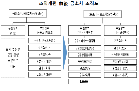 금감원은 지난 1월 말 조직개편을 통해 금소처에 대한 막강한 권한을 부여했다. 기존 금소처는 보험부문을 포함하고 있었지만 사실상 분쟁 및 민원 해결 중심의 사후적 소비자보호 측면이 강한 조직이었다.