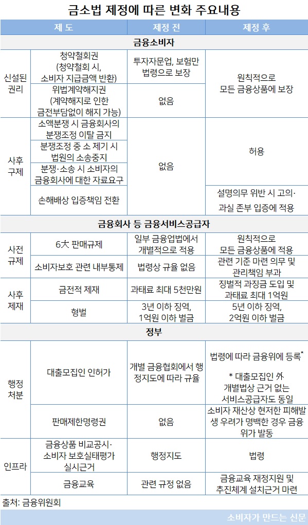 금융위원회 관계자는 “금소법 제정은 소비자 권익신장 뿐만 아니라 금융회사에 대한 국민의 신뢰 제고 차원에서 중요한 전환점이 될 것”이라고 기대했다.