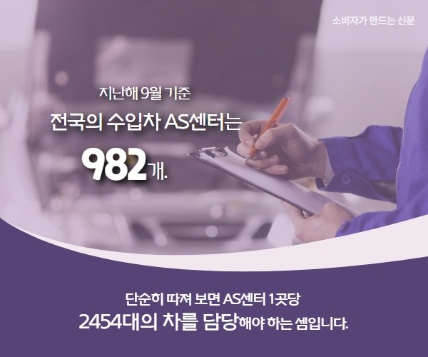 #5. 지난해 9월 기준 전국의 수입차 AS센터는 982개. 단순히 따져 보면 AS센터 1곳당 2454대의 차를 담당해야 하는 셈입니다.