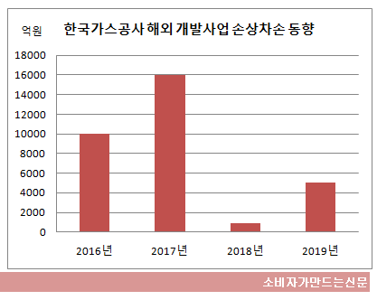 가스공사는 지난 2016년과 2017년 대규모 손상차손으로 막대한 당기순손실을 낸 바 있다. 지난 2016년에는 호주 GLNG사업에서 4204억 원, 이라크 아카스 사업에서 3335억 원 등 해외자원 개발사업에서 1조 원의 손상차손을 입으며 6125억 원의 당기순손실을 기록했다.