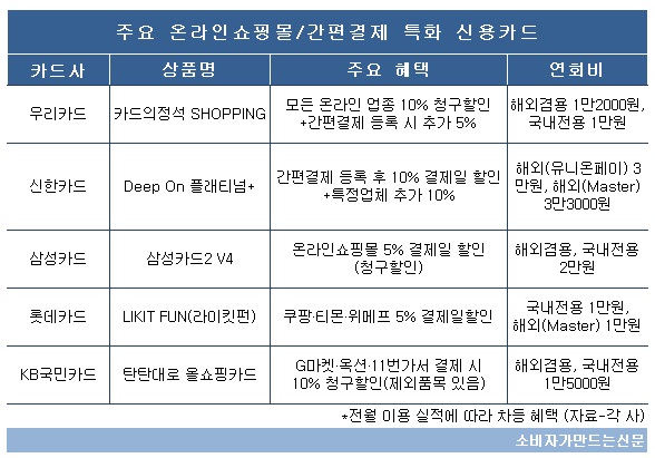 그러면 식음료, 생필품 등 다양한 품목의 구매가 이뤄지는 온라인쇼핑몰 사용에 최적화된 카드는 무엇일까?