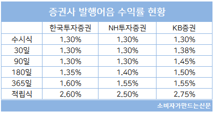 현재 초대형 IB 중 한국투자증권, NH투자증권, KB증권 3개 증권사가 취급하고 있는 발행어음 수익률도 추가 인하가 불가피한 상황이다.