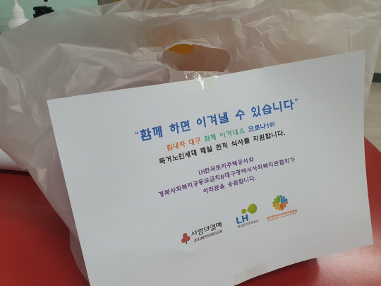 식사비용은 LH가 참여식당에 지불하며, 참여식당은 앞으로 30일간 매일 점심을 도시락 형태로 홀몸어르신 세대에 배달할 계획이다.