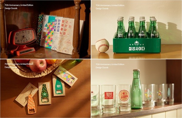 문구세트는 1950~1960년대와 1970~1980년대 디자인 요소를 담은 2종으로 구성됐으며 각각 노트 2종, 엽서 4종, 스티키 메모지 3종이 들어있다. 컵세트는 시대를 대표하는 칠성사이다 별 디자인을 적용한 2종으로 제작됐고 세트당 150mL 용량 컵 3개와 컵받침 3개가 포함돼 있다. 배지는 7종, 마그넷오프너는 4종으로 구성돼 시대별 유행했던 디자인 패턴과 색감을 반영해 제작했다.